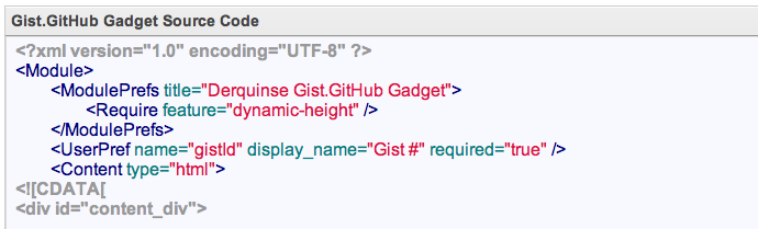 コードの断片を手軽に共有できるgistを、サイトを気軽に作成できるGoogle Site上で貼付けるガジェットファイルが作成されていたようです。通常、JavaScriptが埋め込めないGoogle Siteに埋め込むためにGoogle Gadgetを通じて埋め込むというアプローチとのことです。