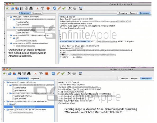 先日のWWDCで発表されたアップルの新サービスがマイクロソフトとアマゾンのクラウドサービスを使っているらしいという話題があがっていました。なんでもパケットをキャプチャするプロキシを使っていたところその中にAzureとS3の名前が出ているみたいですね。