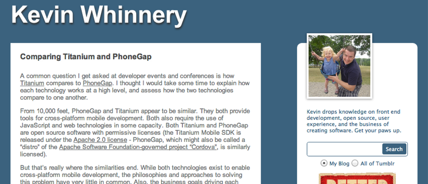iOSとAndroidのクロスプラットフォームなアプリケーションをする際に使われるTitanium MobileとPhone GapをTitaniumの開発元、Appceleratorの開発者Kevin Whinnery氏が比較した記事が話題になっていました。