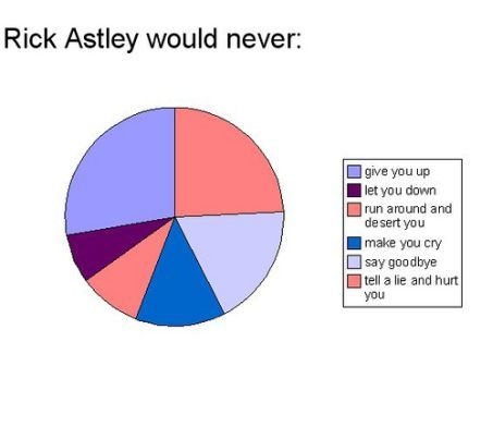 Rickroll で一斉を風靡した Rick Astley の歌詞をネタにしたものですね。状態遷移図でも見たことがある気がするんですが、これは歌詞の出現率も表しているんでしょう(適当)。