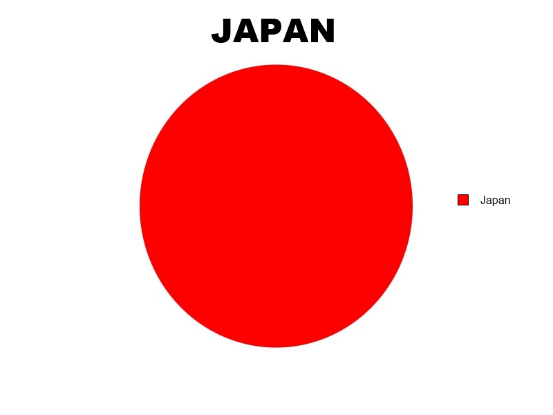 ほとんど意味が分かりませんが、日本国旗はパイチャートで書けるよ!という事でしょうか。バングラディシュもかけそうだな、と思ったら、ちゃんと登場しています(おそらくコメントに関して down vote を受けているのででデフォルトでは見えません)。正確に日本国旗を描く時は、朱の色指定だけでなく、白地のアスペクト比、円の比率に関して規定があるので、これは日本国旗としては正しくないですね。日本人としてはコメント欄に突撃すべきところでしょうか。