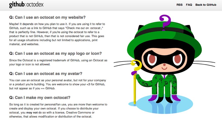 さまざまなオクトキャットのバリエーションを展示しているoctodexのFAQページにはそのライセンスについての記載があります。原文はサイトを参照して頂くとして、下記のような内容です。(強調は訳者)