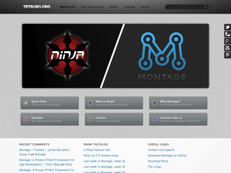 Ninja とそれを実現している JavaScript フレームワークの Montage を中心にした、open-source community を立ち上げたいみたいですね。サイトの構造やドキュメントにはまだちぐはぐな部分があったりしますが、Github 上でかなり活発に開発は行われています。