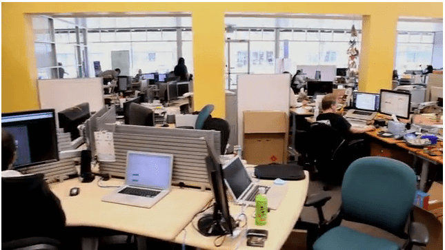 オフィスはオープンなタイプ。カメラの動きがあってキャプチャできなかったのですが、かなりユニークな飾り付けがたくさんされているオフィスです。オフィスを訪れた人をリクルーティングのチームが鐘を鳴らして歓迎する様子も映っていました。