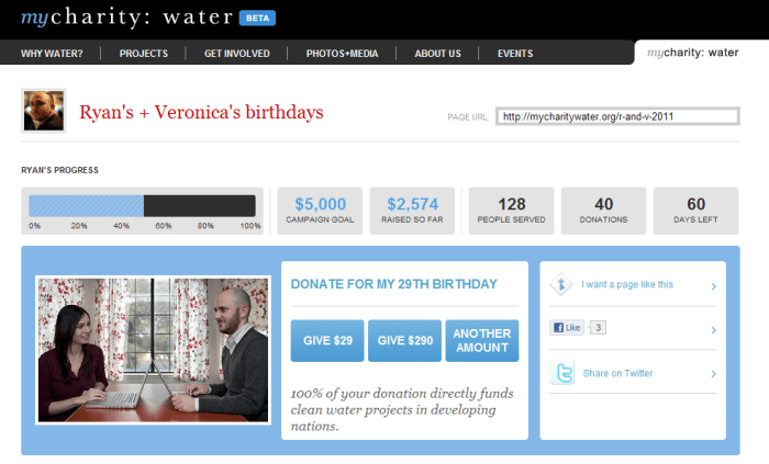 清潔な飲料水をアフリカなどに届ける為のcharity:waterというサイトを使って誕生日記念の寄付を受け付けているようです。連名になっているRyan BlockもEngadgetの編集長を務めていたスーパーギークです。ベロニカと彼の関係についてはお察しください。