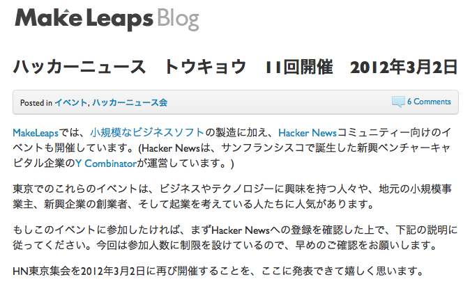 11回目のHackerNews meetupが再び東京で開催 (3/2)
